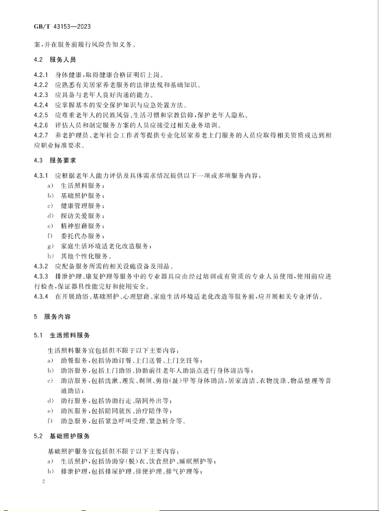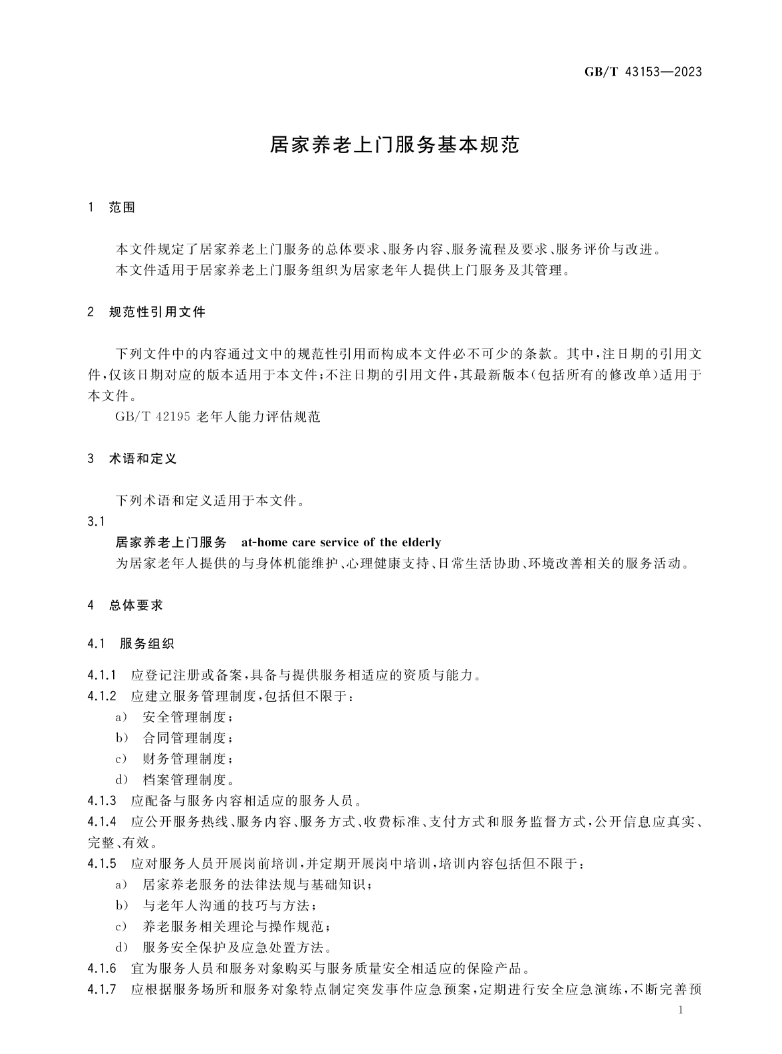 居家養(yǎng)老上門服務(wù)基本規(guī)范