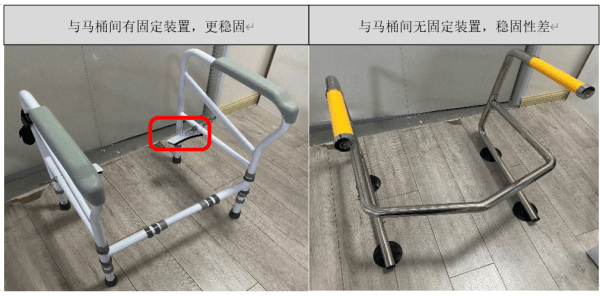 結(jié)論:馬桶扶手應(yīng)與馬桶之間有固定裝置,保證其使用過程中的穩(wěn)定性。此外,馬桶扶手的支架應(yīng)采用較粗、堅固的材質(zhì),給消費者以結(jié)實、承重能力好的感覺。